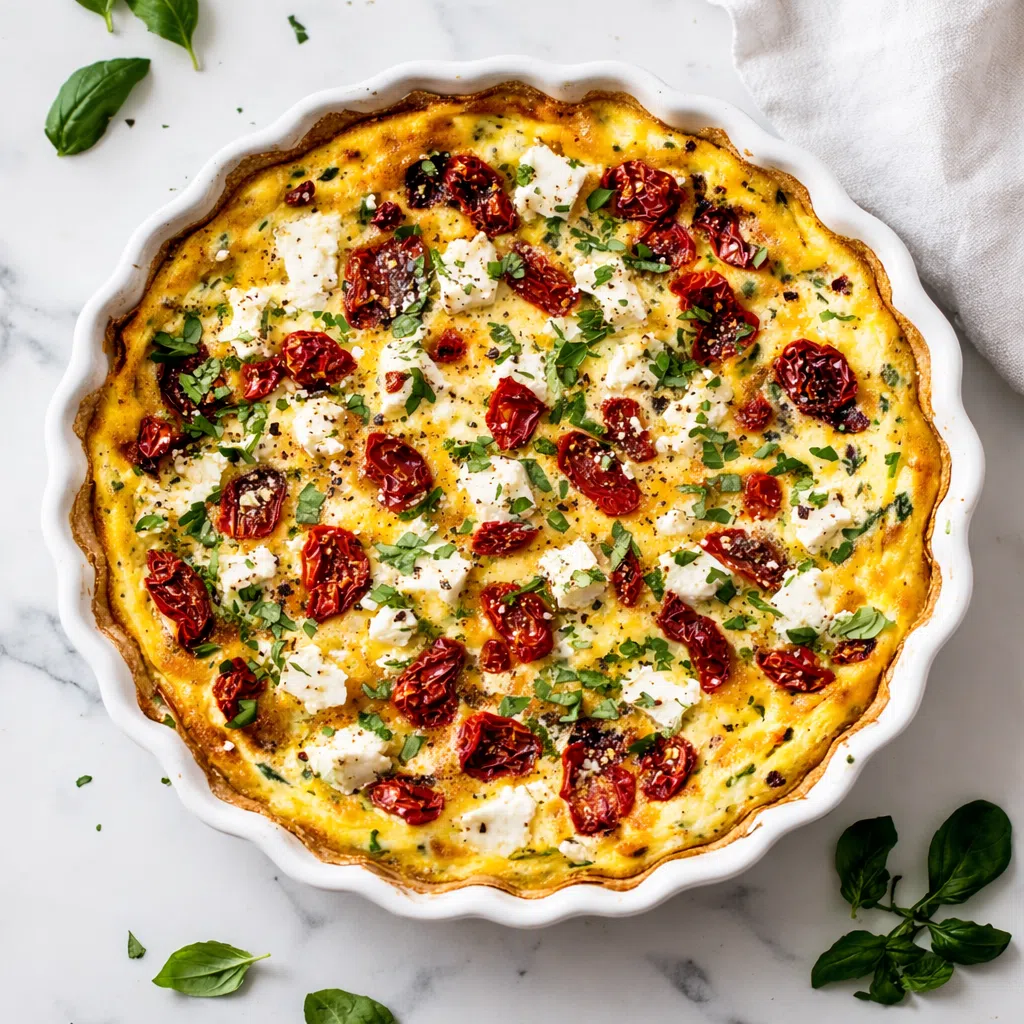 This Mediterranean-inspired quiche is bold, tangy, and full of flavor thanks to sun-dried tomatoes and feta cheese.