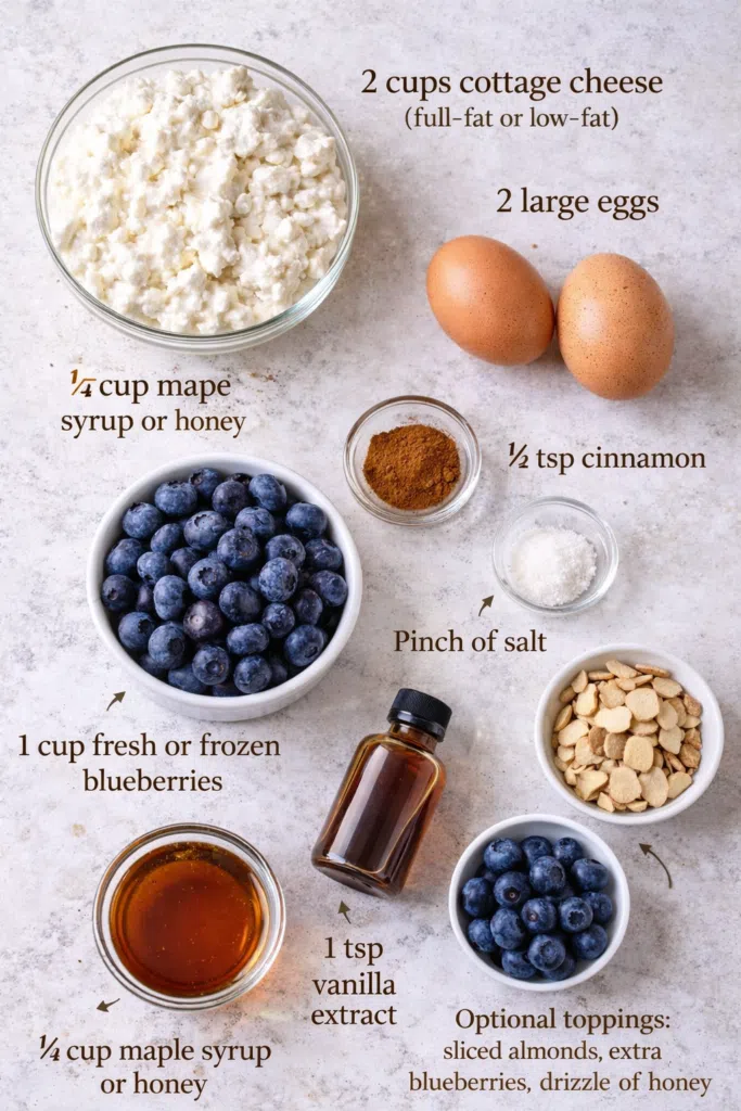 - Honey or maple syrup – Just enough to balance the tang of the cottage cheese.