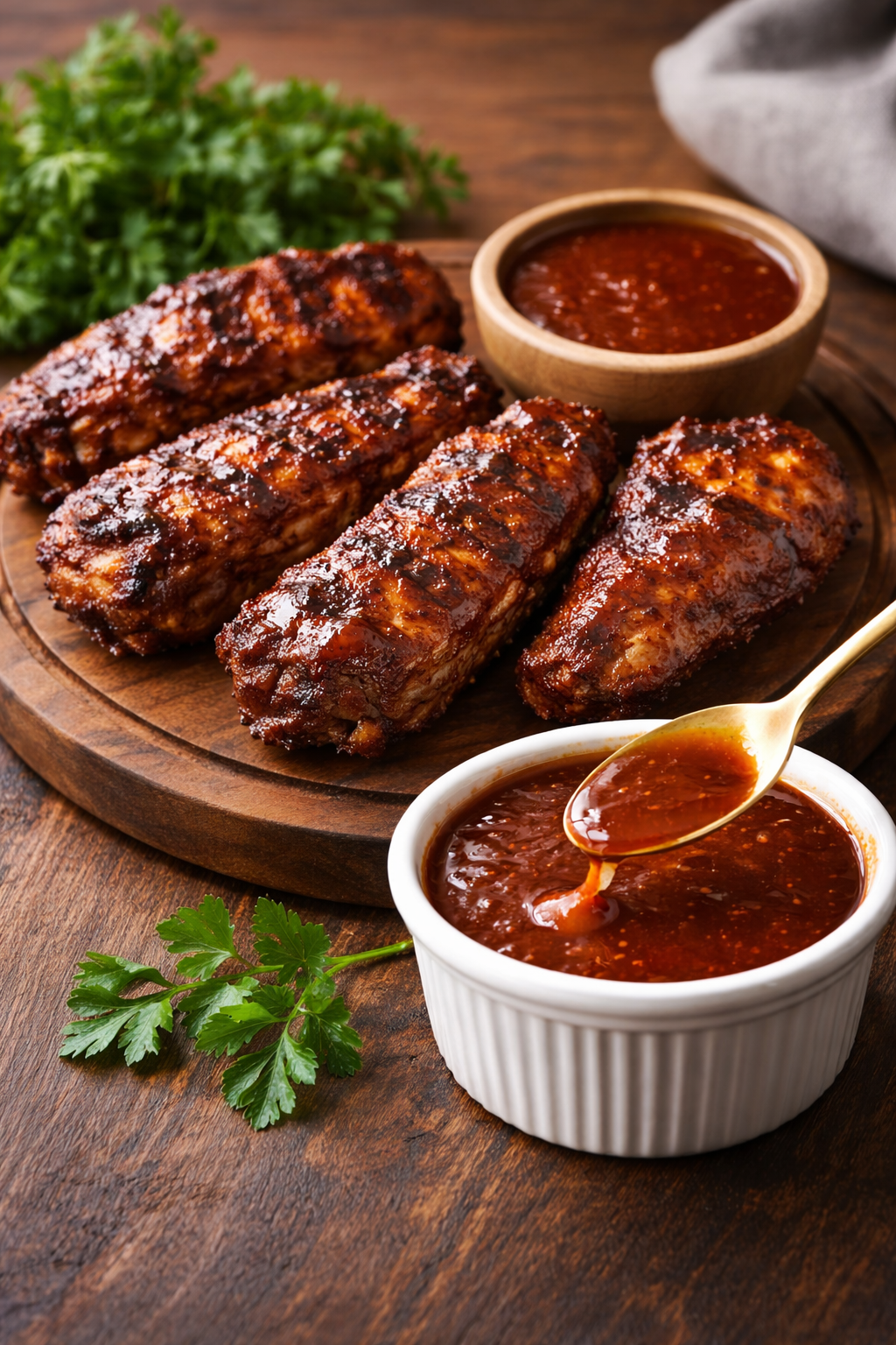 Ribs pair beautifully with Carolina BBQ sauce, especially when used as both a light marinade and a finishing glaze. The sauce complements the smoky flavor of the meat and helps balance its natural richness without becoming sticky or overly sweet.