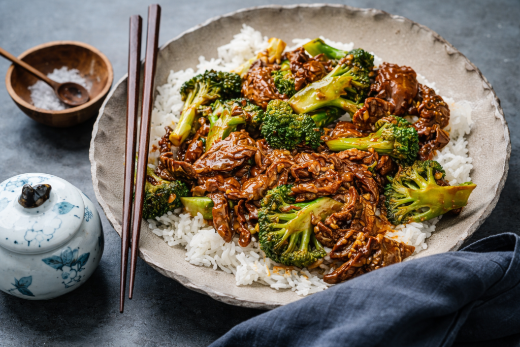 Beef and broccoli is widely known as a Chinese-American dish inspired by Cantonese stir-fry traditions. It reflects the philosophy of quick cooking, thin slicing, and balanced sauce — techniques rooted in classic Chinese cooking methods.