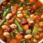 A hearty, comforting vegetable soup with tender vegetables, beans, and a savory tomato broth — inspired by classic Italian-American flavors.