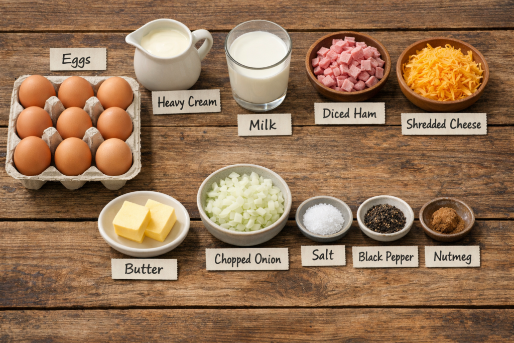A creamy, easy crustless quiche made with ham, cheddar, and a silky egg custard — perfect for breakfast, brunch, or light dinner.