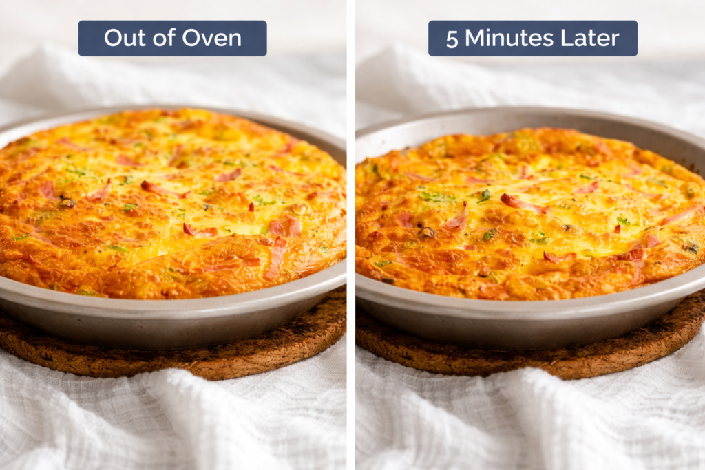 The problem is that eggs continue cooking from residual heat even after being removed from the oven. If you bake until fully firm, you’ve already gone too far. The proteins tighten excessively, squeezing out moisture and creating a rubbery texture.