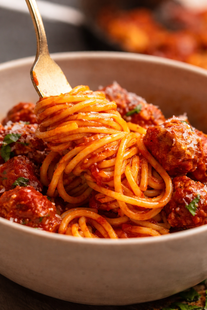 The meatballs should be cooked through and juicy inside. Let them rest for a minute or two before serving — this helps the juices settle.