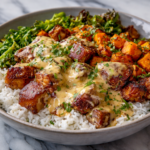 High protein chicken and sweet potato bowls perfect for meal prep and balanced weeknight dinners.