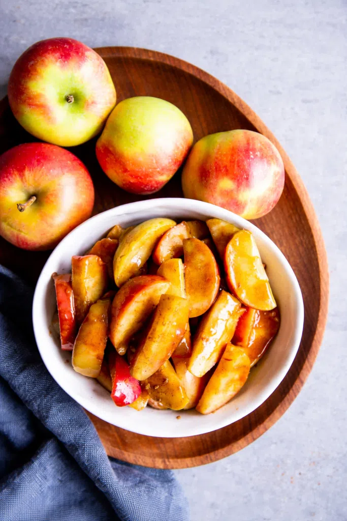 Stored in an airtight container, these cinnamon apples last up to 5 days in the refrigerator. As they sit, the flavors deepen slightly, making them even better for breakfasts and snacks. Allow them to cool fully before refrigerating to prevent condensation, which can water them down.