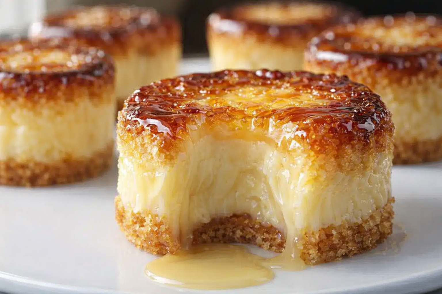 Creamy mini cheesecakes with a crisp caramelized sugar topping that combines classic crème brûlée elegance with rich cheesecake flavor.