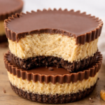 Creamy mini cheesecakes with a hidden peanut butter cup center and chocolate topping.