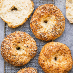 Stored in an airtight container, these bagels last up to four days at room temperature or five days in the fridge. I usually slice them before storing so they’re ready to toast.