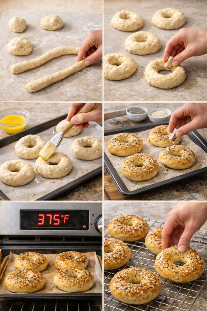 The correct approach is gentle mixing, accurate measuring, and watching the oven closely. When done right, these bagels are tender inside with just enough chew.