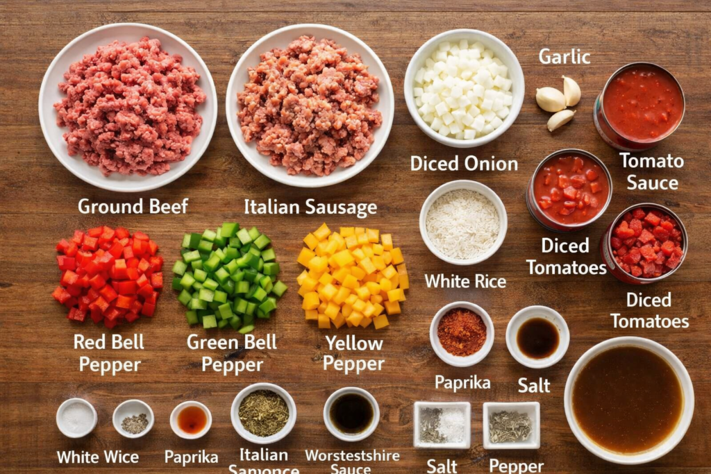 A hearty one-pot soup combining ground beef, Italian sausage, bell peppers, rice, and rich tomato broth for the ultimate family comfort meal.