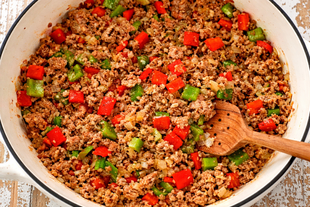 The mix of ground beef and sausage creates a layered flavor. The sausage adds seasoning and depth, while the beef provides structure and heartiness. The bell peppers aren’t just colorful — each color contributes slightly different sweetness levels. Red peppers are sweeter, green are more earthy, and yellow sit right in between.