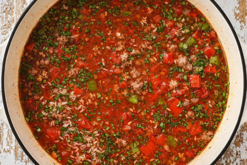 - All the flavor of stuffed peppers without the fuss. No stuffing, no baking trays — just one pot.